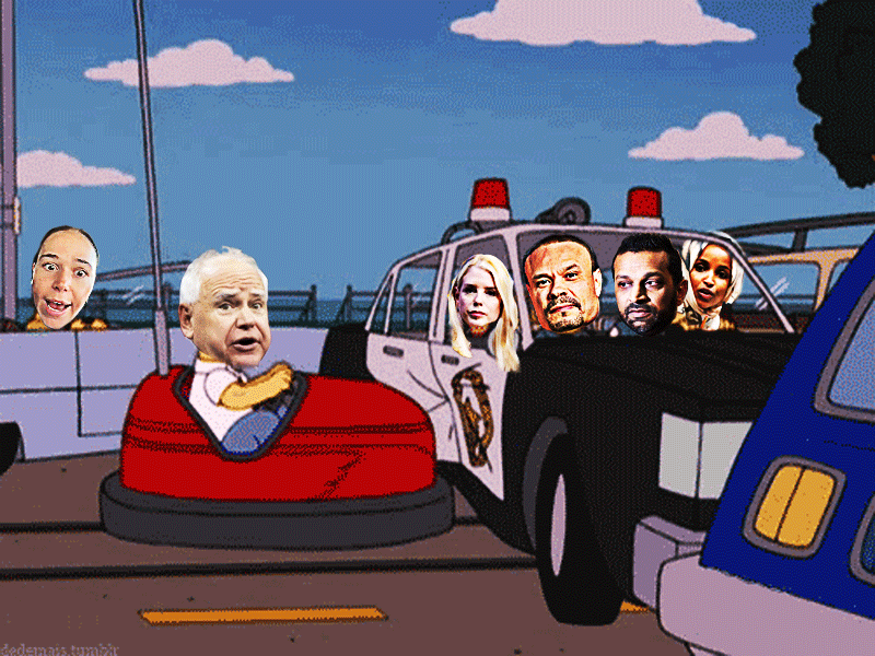 Left to Right: Kamala's Vice President pick Minnesota Governor “Don't Touch My ‘Stolen’ Valor”, DWI, Liar (Fibber), Tampon Tim Walz; President Donald Trump