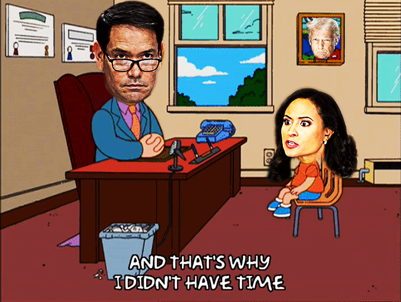 Left to Right: Secretary Of State Rubio;“ NBC's “Meet The Depressed” “ Crazy Eyes” Kristen Welker