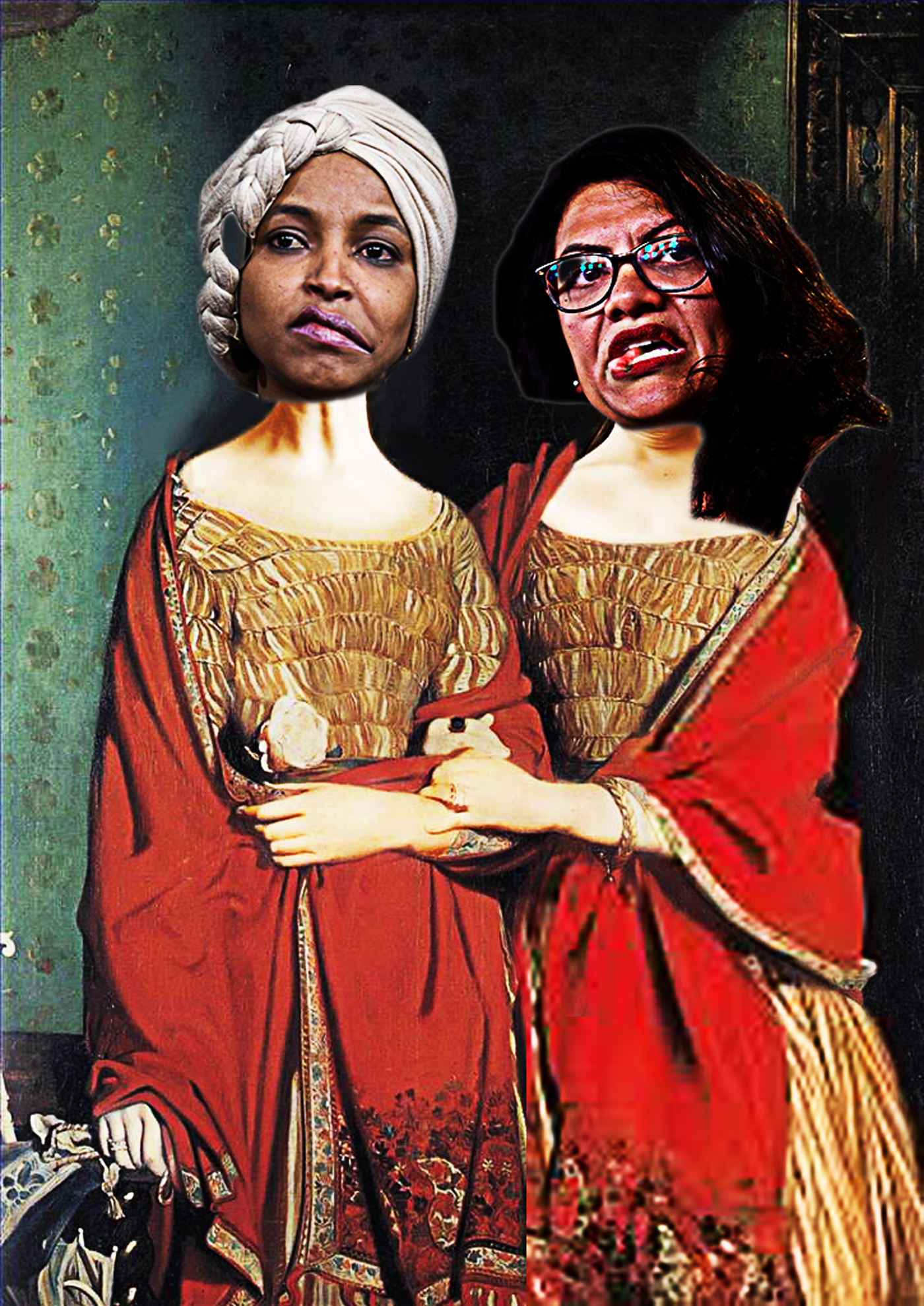 Left to Right: U.S. Representative for Minnesota's 5th Congressional District, Ilhan Abdullahi Omar (D-Mogadishu, Somalia); U.S. Representative for Michigan's 12th Congressional District, Rashida Harbi Tlaib (D-Democratic Socialists of America)